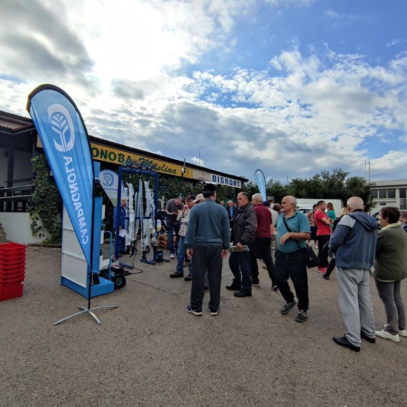 Entrada d.o.o. u suradnji sa TZ Punat, udrugom maslinara Naška Punat, i tvrtkom Pinel Krk ispred uljare Punat održala je prezentaciju programa tresača maslina Campagnola.